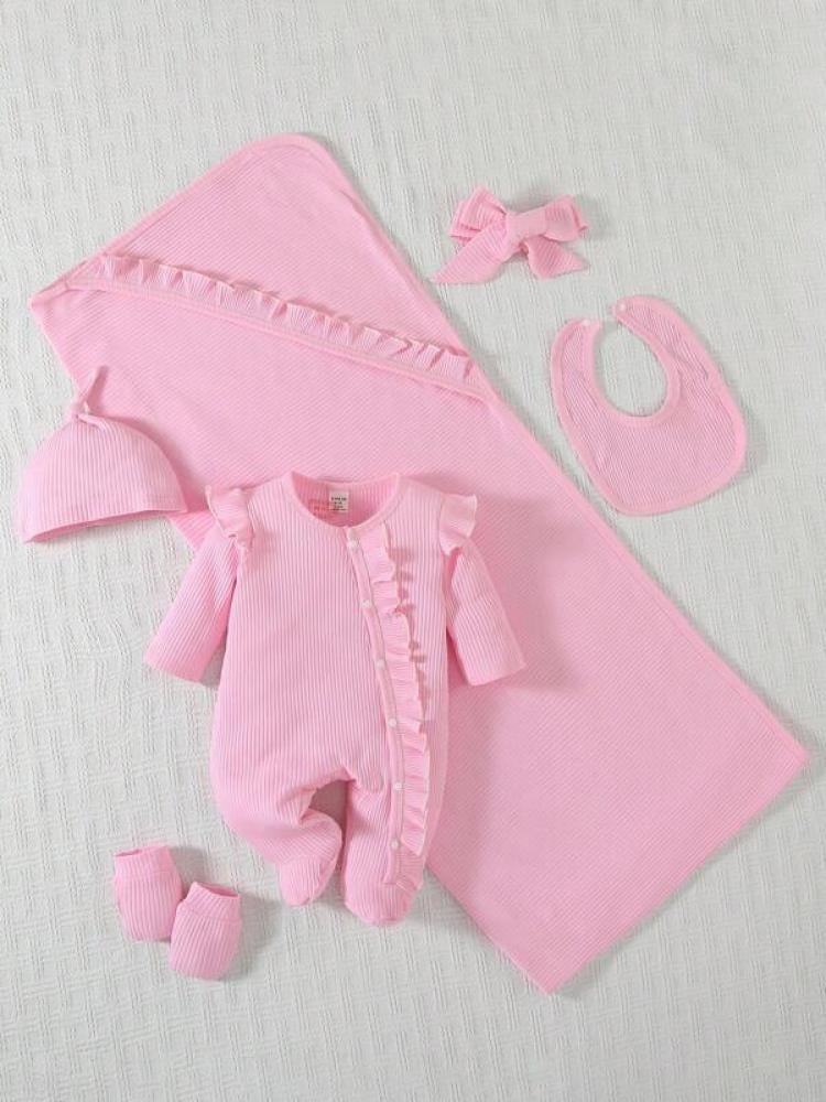 - اسم المنتج: طقم ملابس وردي لحديثي الولادة