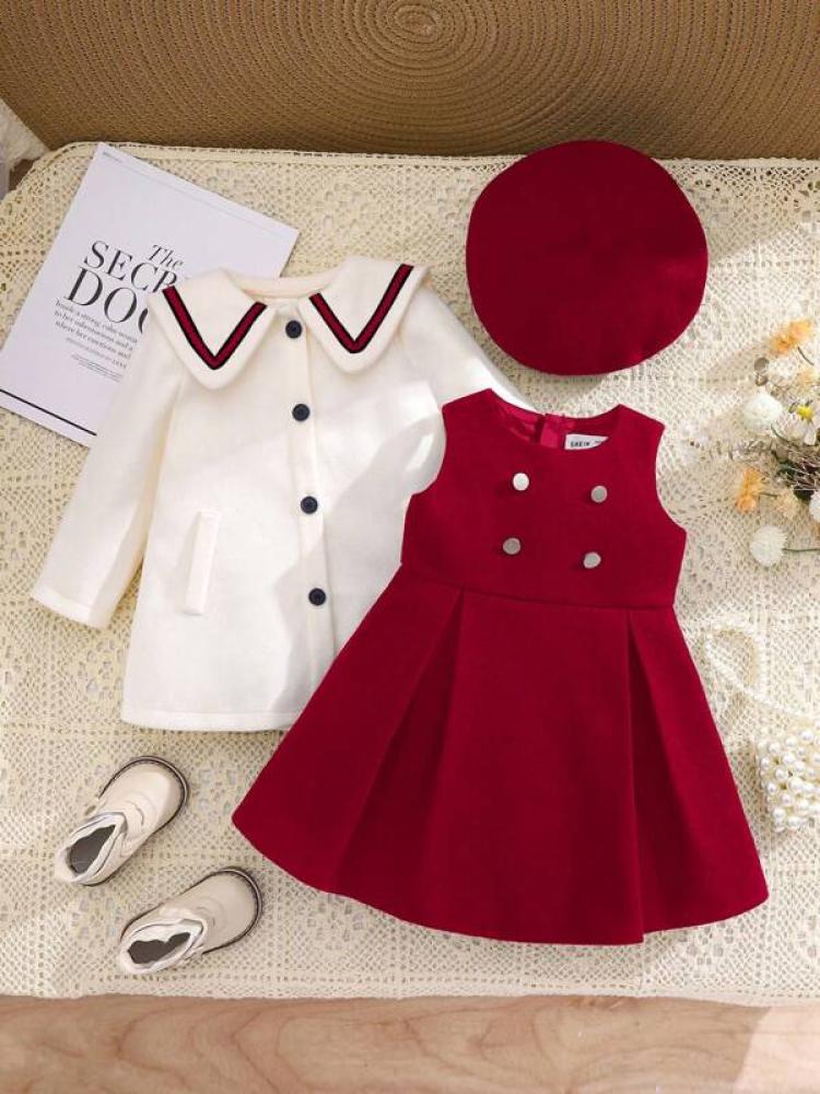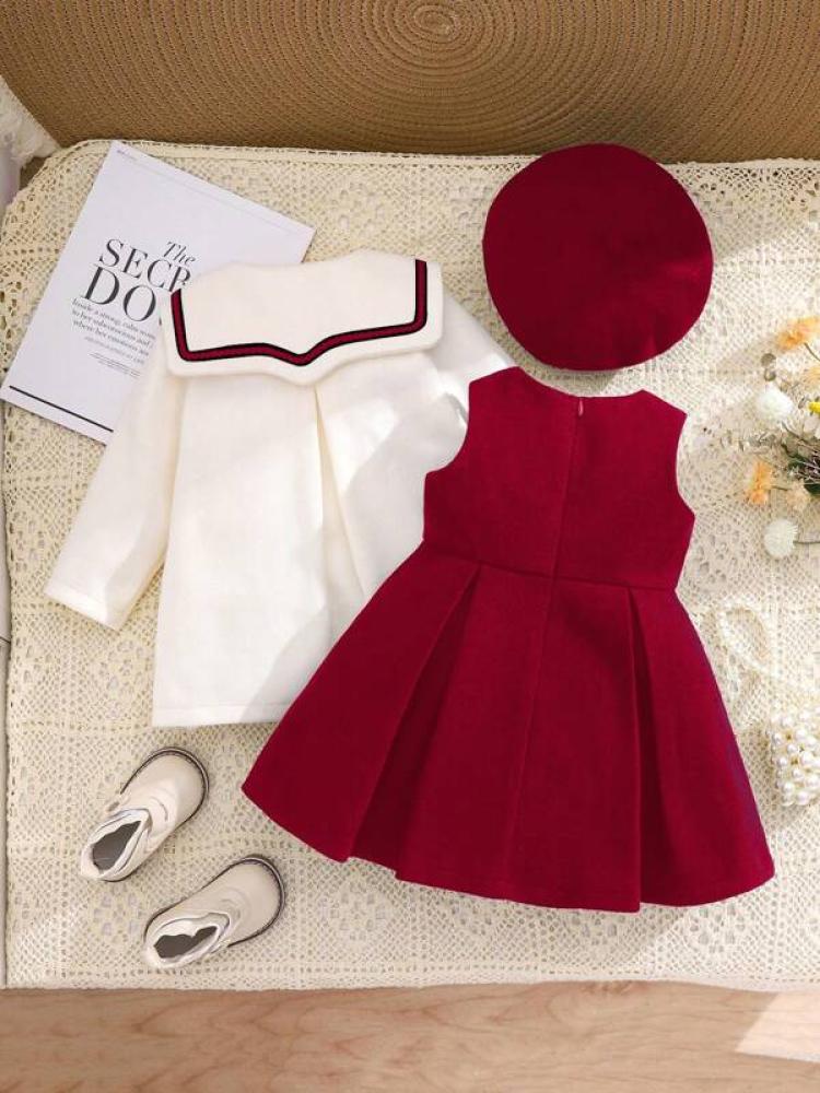 طقم فستان أكاديمي لطيف بدون أكمام وكارديجان طويل بياقة